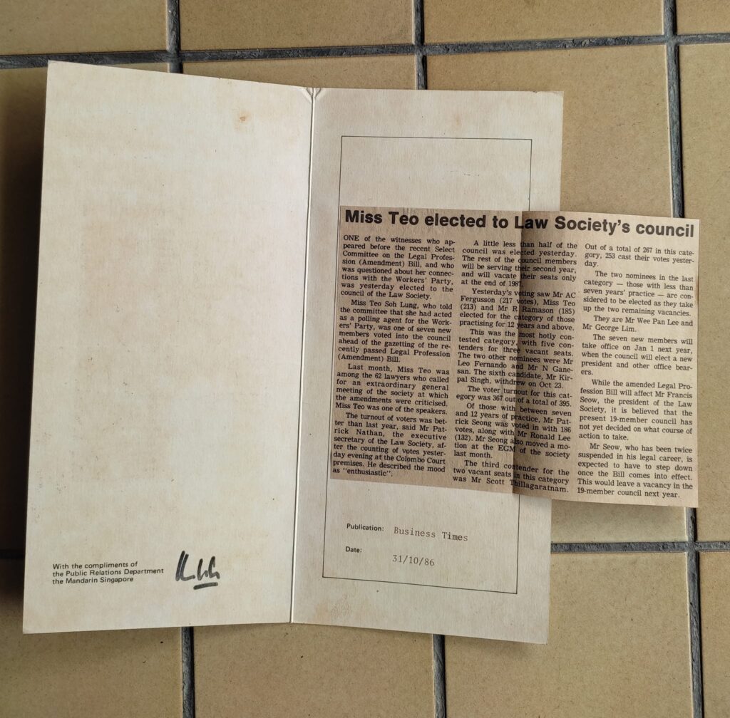 The third paragraph reminded me that the Law Society conducted an extraordinary meeting at the request of 62 members who sought the withdrawal of the Amendment to the Legal Profession Bill. The minimum number of members who wished to call a meeting at that time was 25. So 62 members was a very credible number. I think members were all unhappy with the bill which primarily sought the removal of Mr Francis Seow as its president.